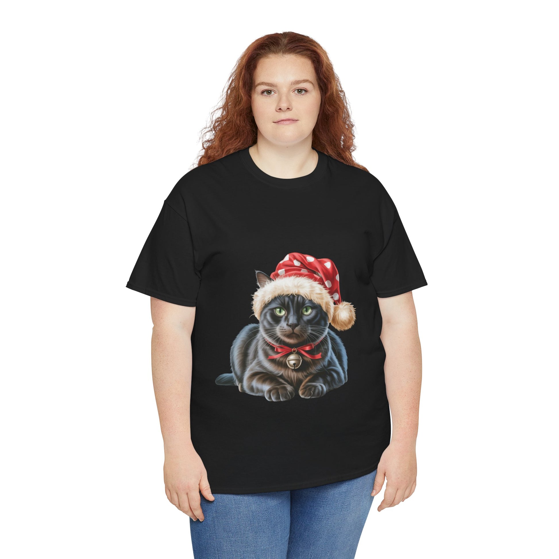 Black Cat in Santa Hat T-Shirt — Cute Christmas Black Cat Holiday Tee