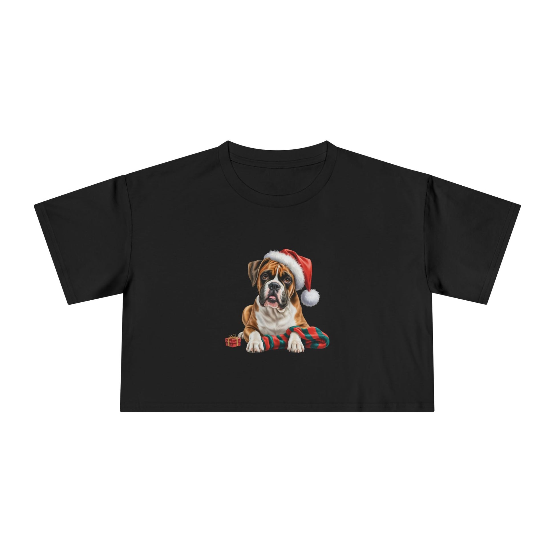 Christmas Boxer Crop Tee — Boxer dog in Santa Hat Holiday Top
