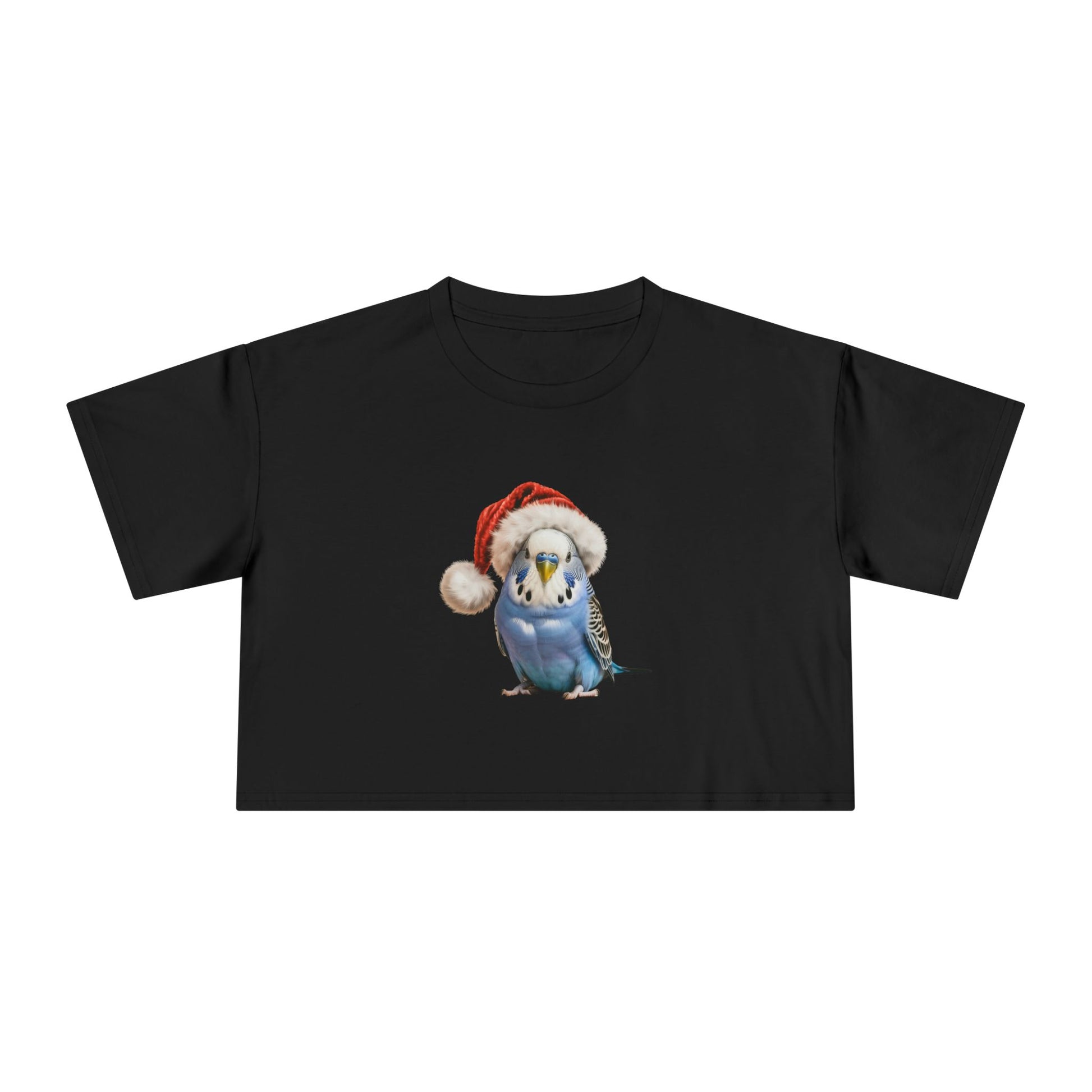 Christmas Budgie Crop Tee — Cute Budgerigar in Santa Hat Holiday Shirt