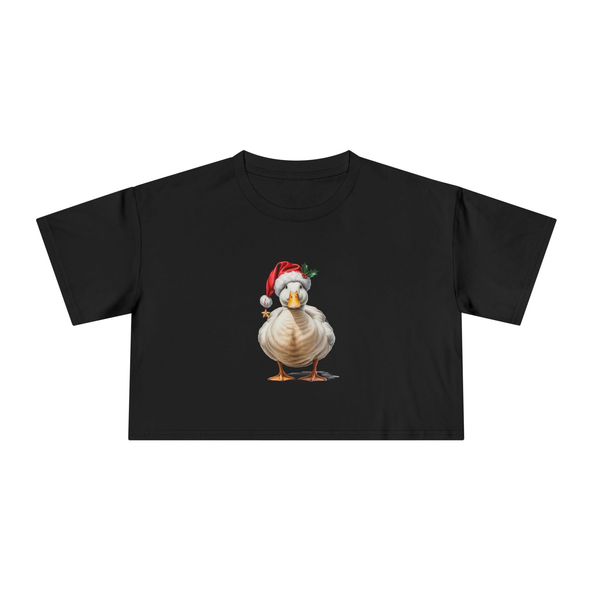 Christmas Duck Crop Tee — Cute Holiday Duck in Santa Hat Women's Crop Top