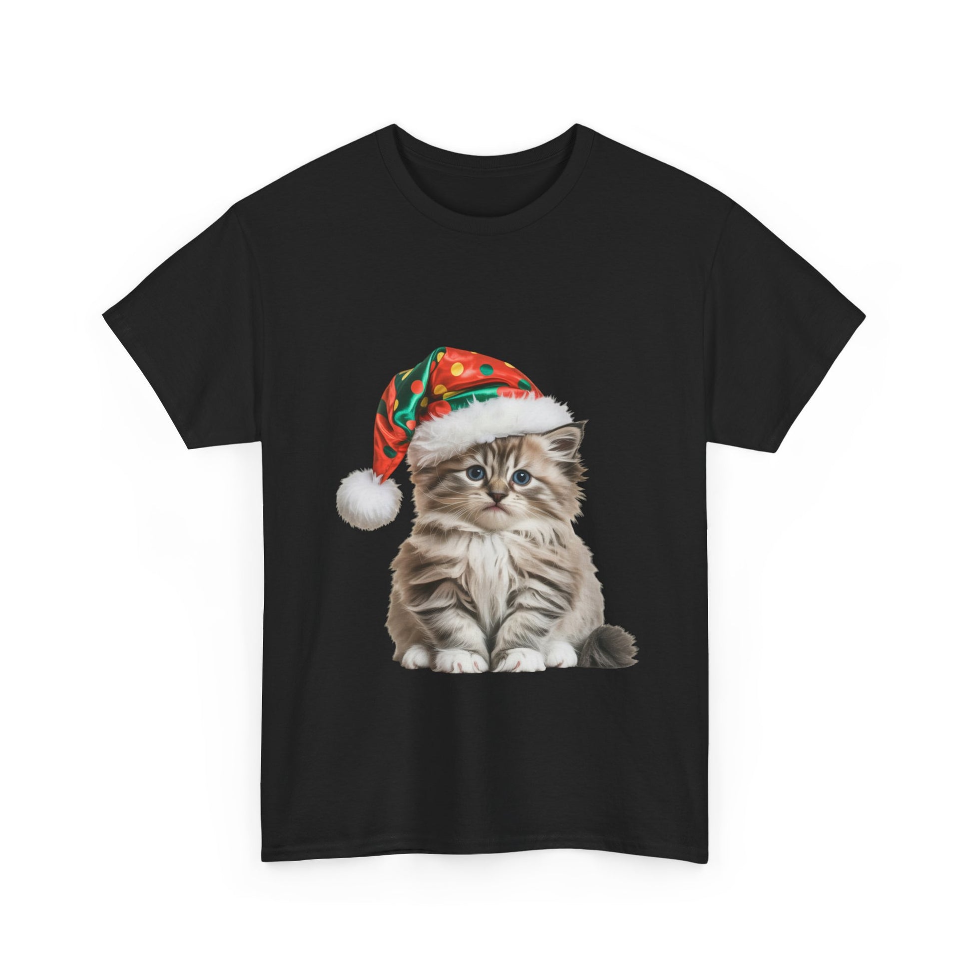 Christmas Kitten T-Shirt — Cute Cat in Santa Hat Holiday Tee