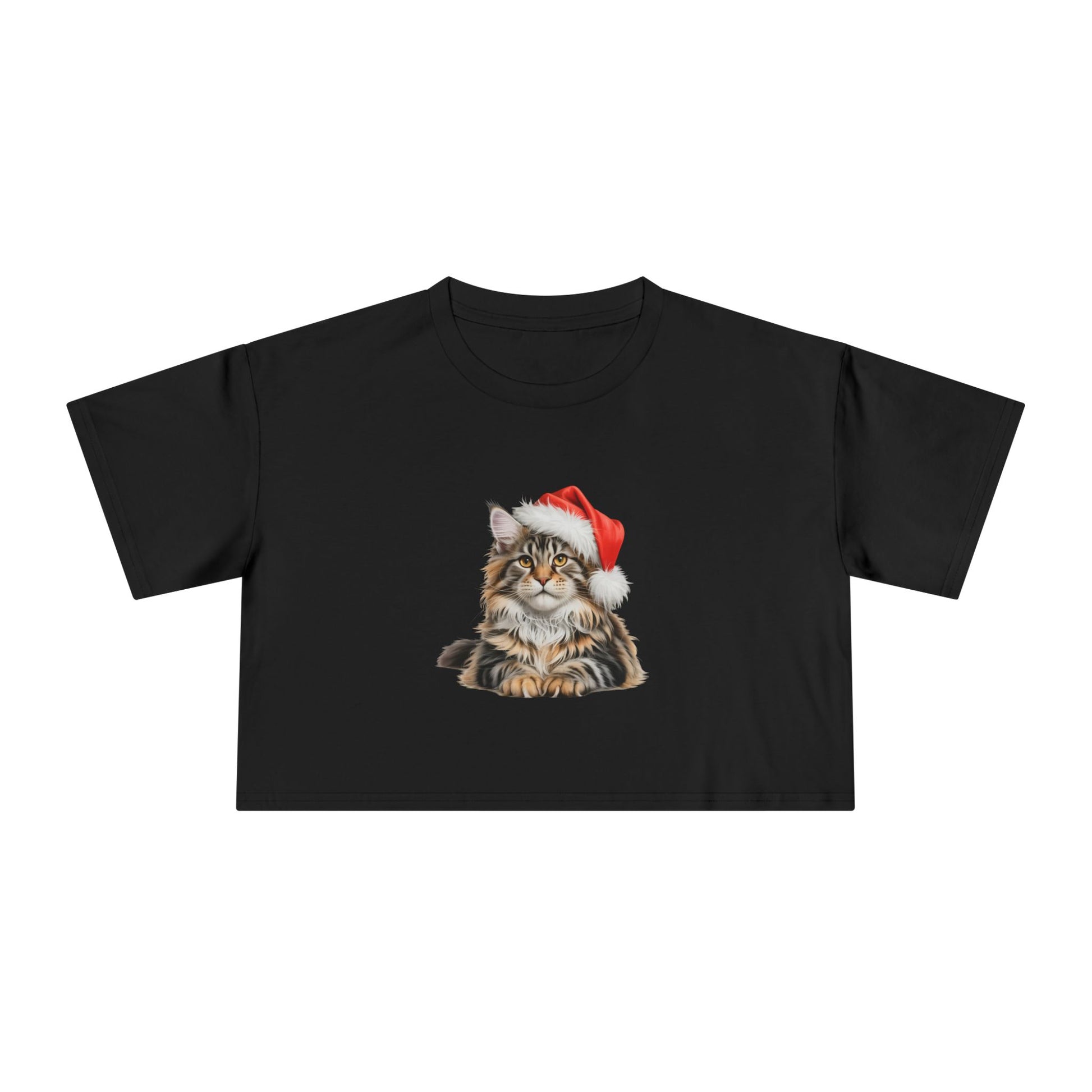 Christmas Maine Coon Crop Tee — Maine Coon Cat Wearing Santa Hat Holiday Top