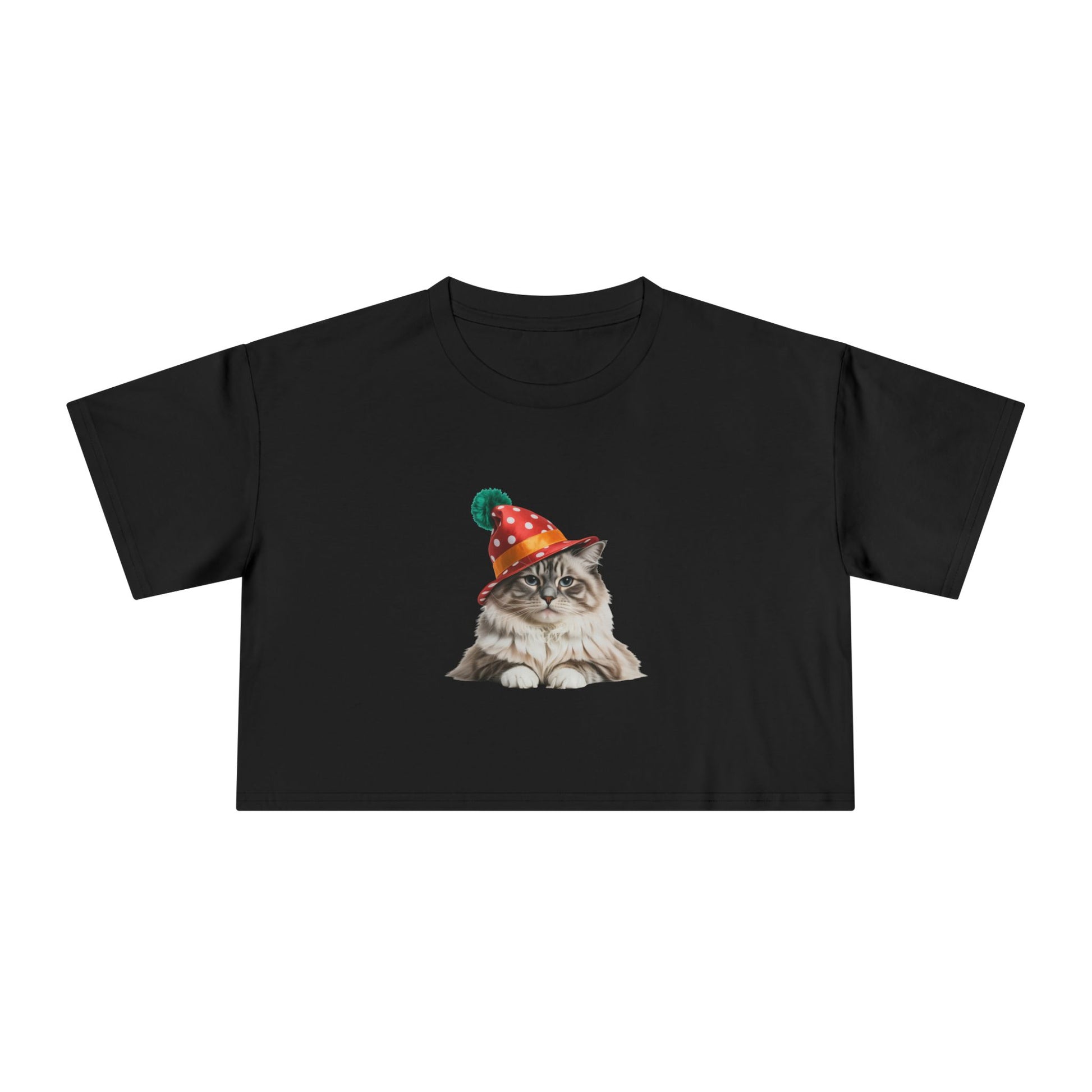 Cute Christmas party cat Crop Tee — Cat Wearing Christmas Holiday Hat Graphic