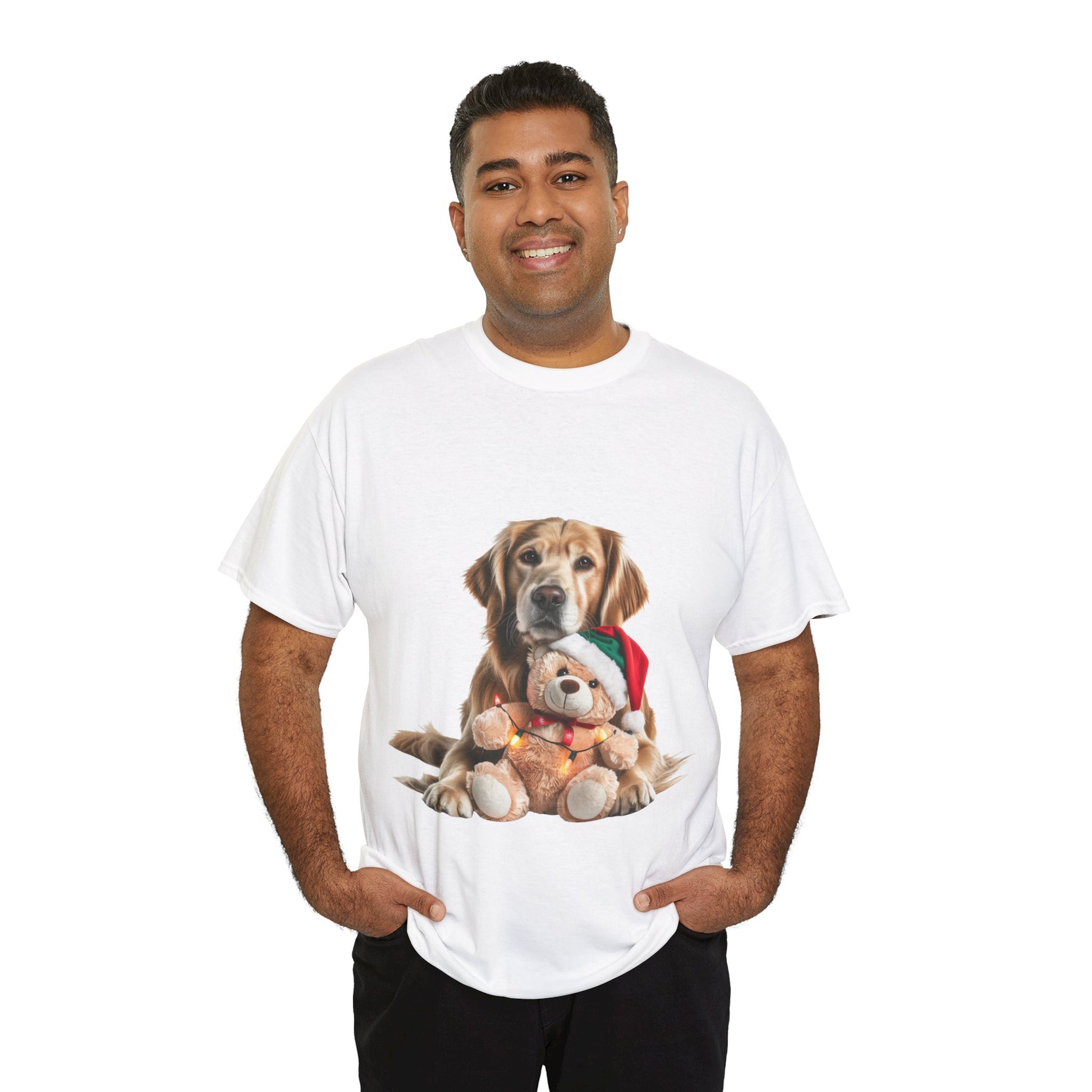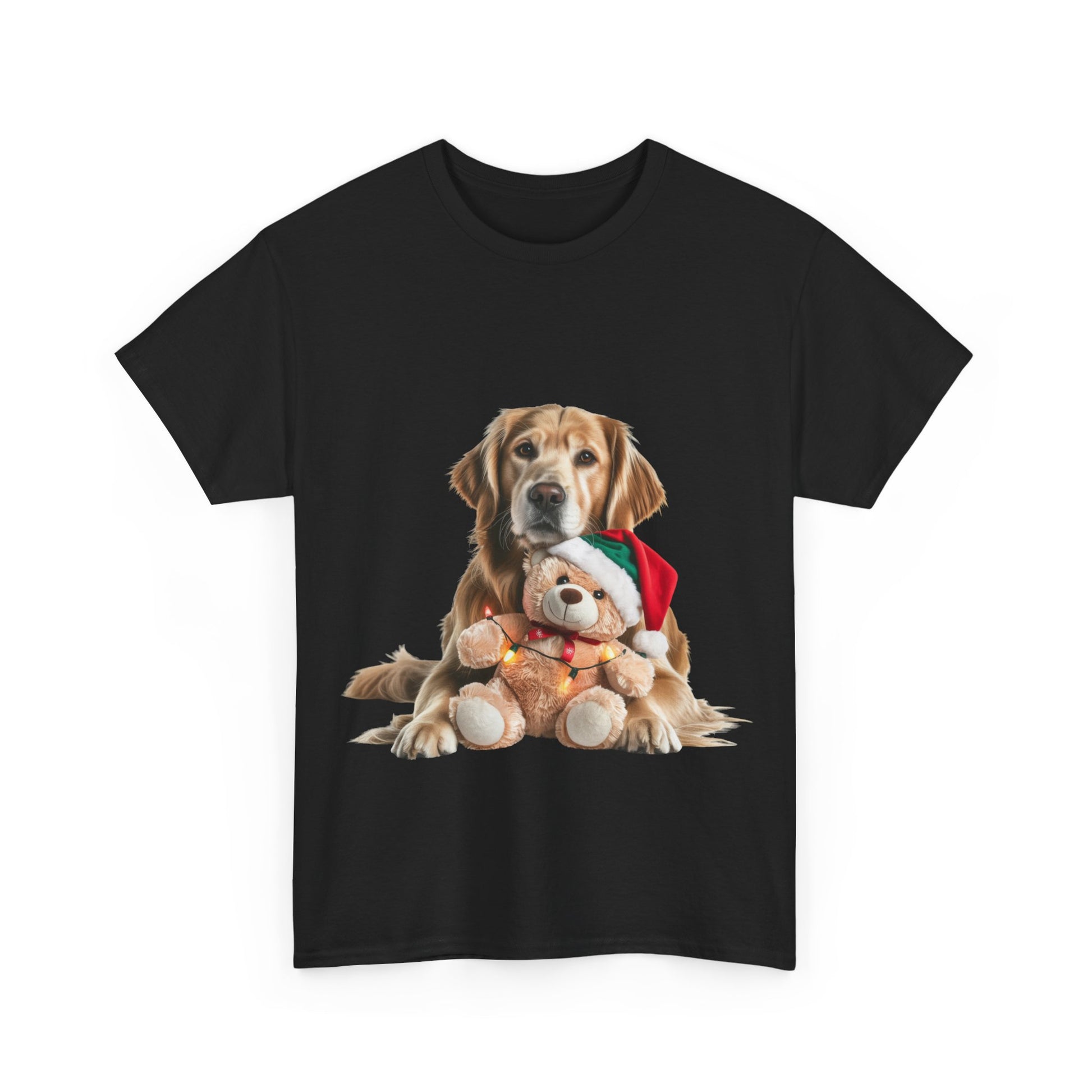 Dog with Holiday Teddy T-Shirt — Christmas Golden Retriever Tee