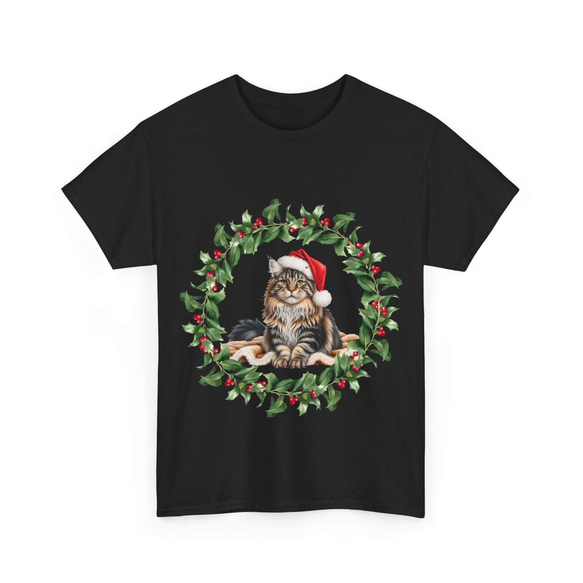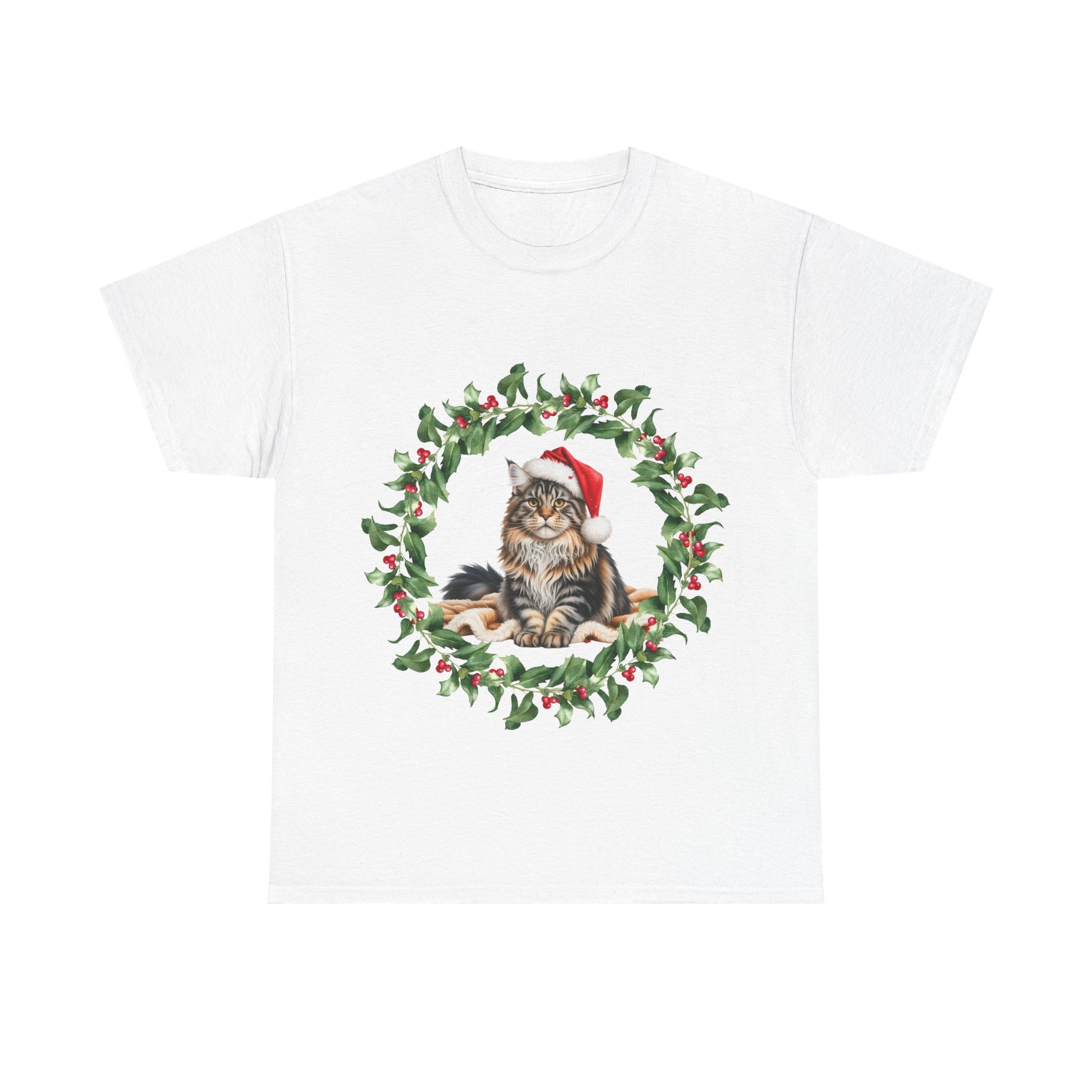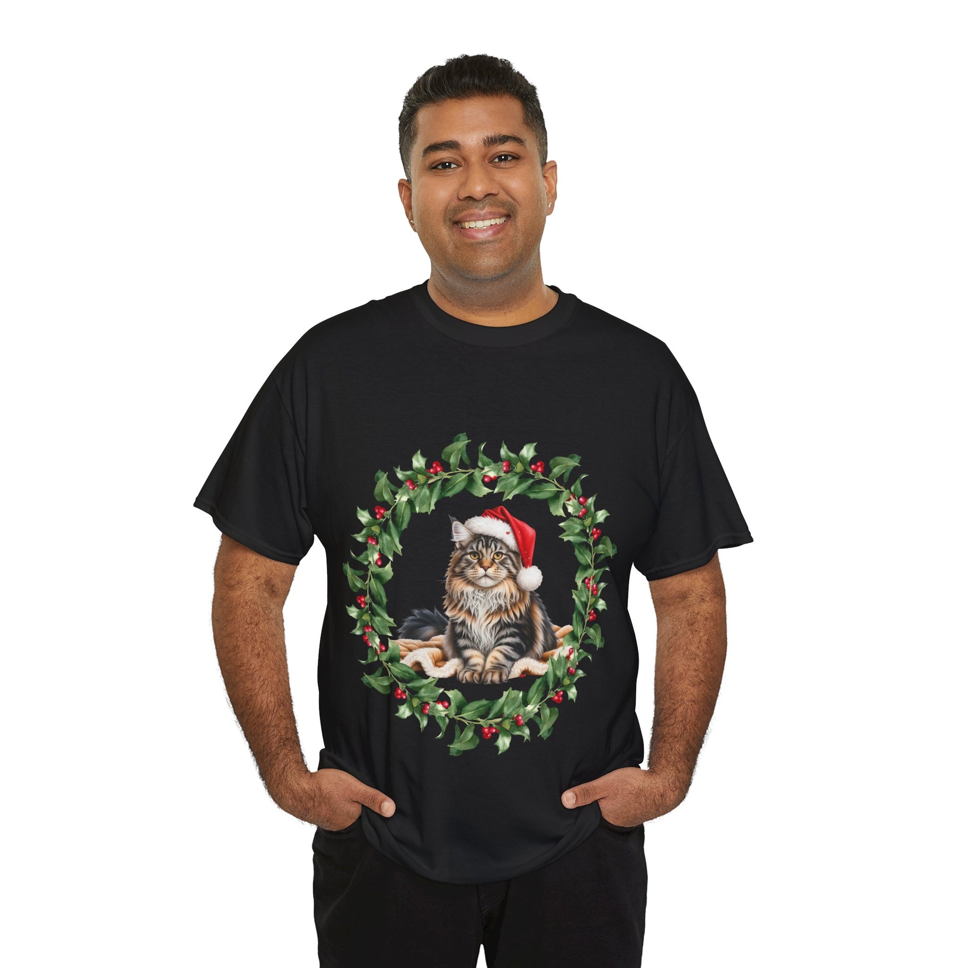 Maine Coon cat Christmas wreath T-Shirt, Festive Maine Coon Cat Christmas Tee, Cute Pet Lover Shirt, Holiday Apparel, Great Gift for Pet Owners