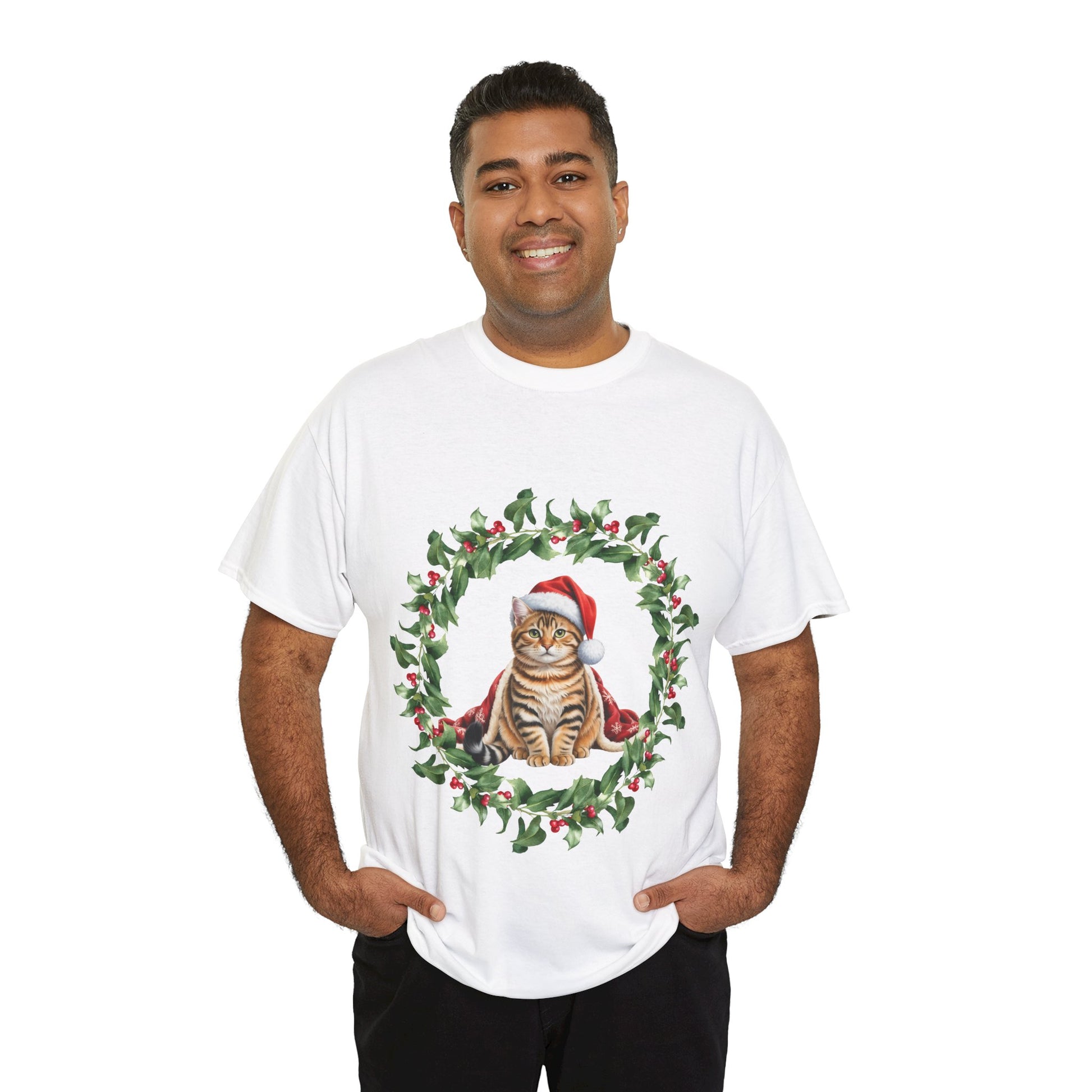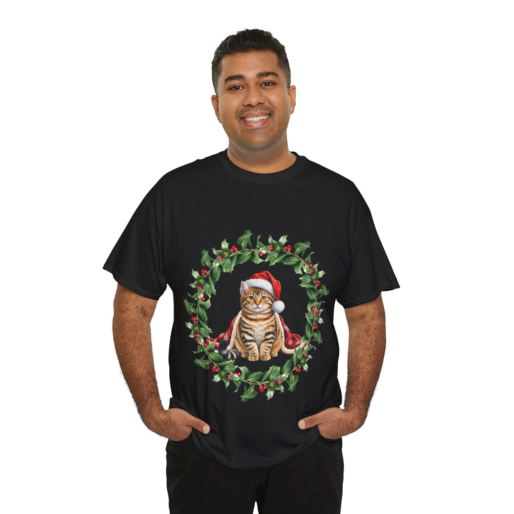 Tabby cat Christmas wreath T-Shirt, Festive tabby Cat Christmas Tee, Cute Pet Lover Shirt, Holiday Apparel, Great Gift for Pet Owners