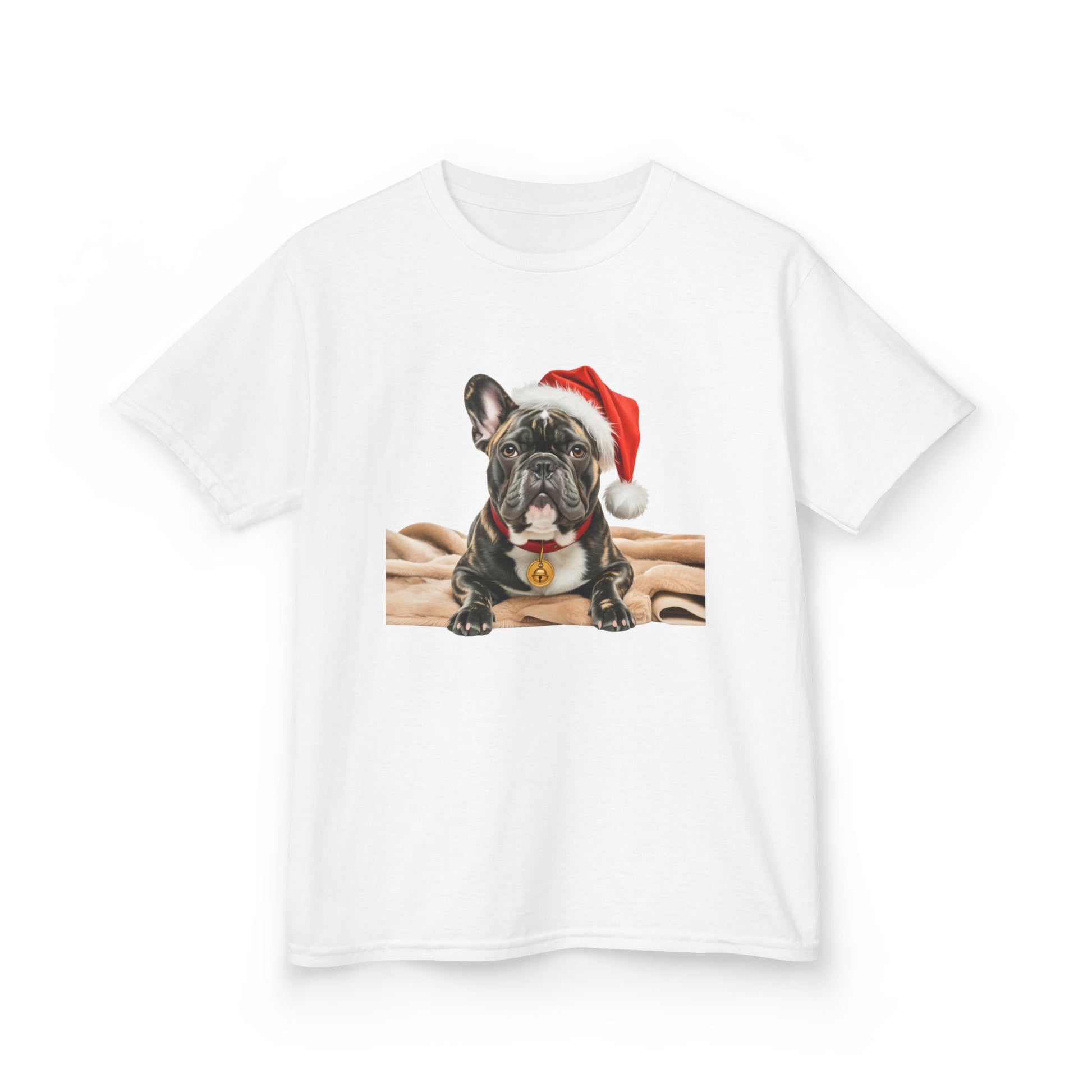 Kids Christmas Dog T-Shirt – Cute French Bulldog (Frenchie) Wearing a Santa Hat