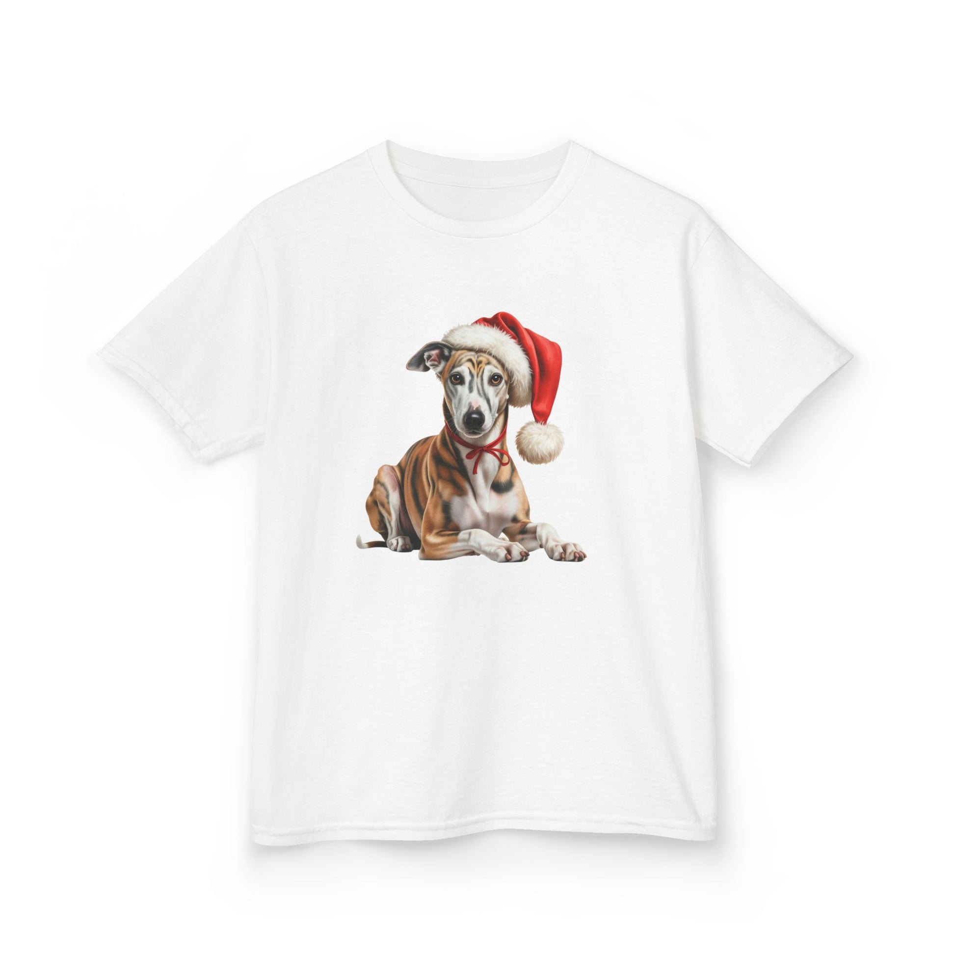 Kids Christmas Dog T-Shirt – Cute Greyhound Wearing a Santa Hat