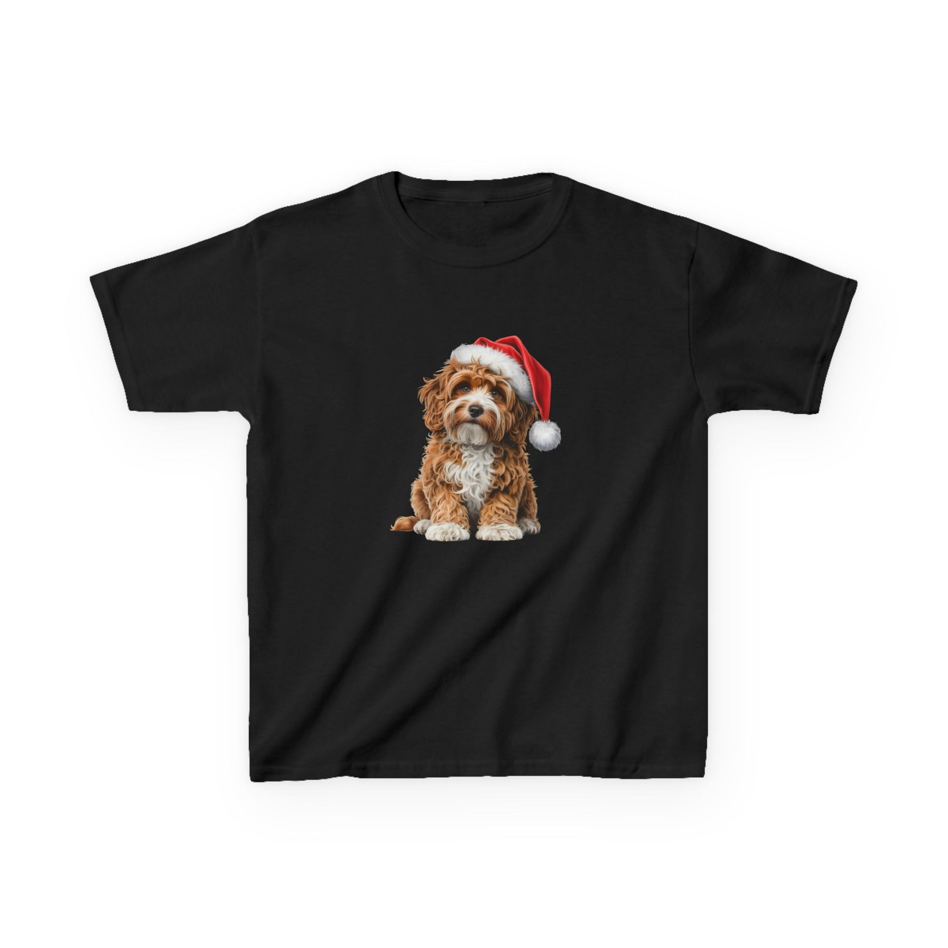 Kids Christmas Dog T-Shirt – Cute Cavoodle Wearing a Santa Hat