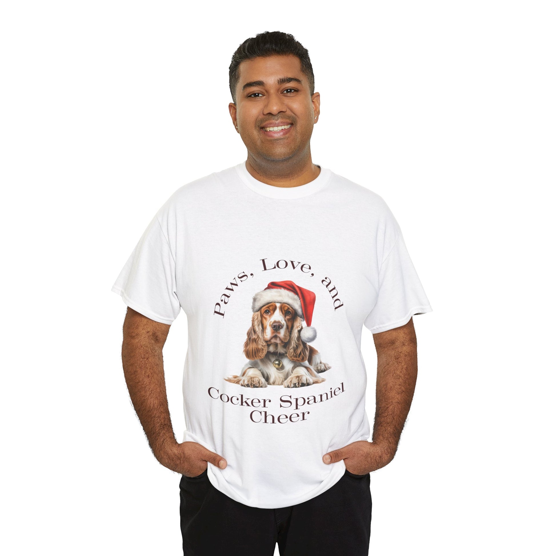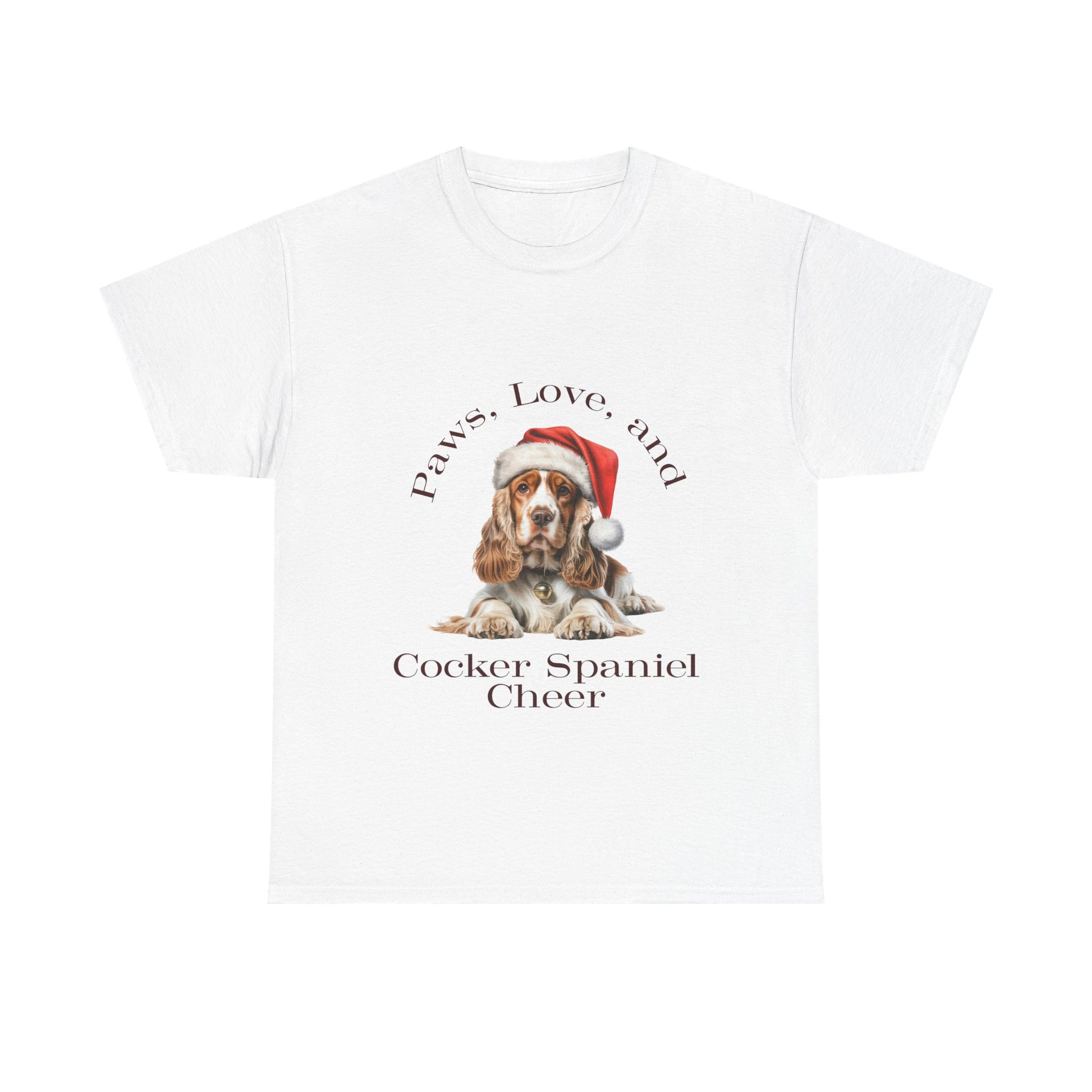 Paws, love, and Cocker Spaniel Cheer Christms T-Shirt, Festive Cocker Spaniel Dog Christmas Tee, Cute Pet Lover Shirt, Holiday Apparel, Great Gift for Dog Owners