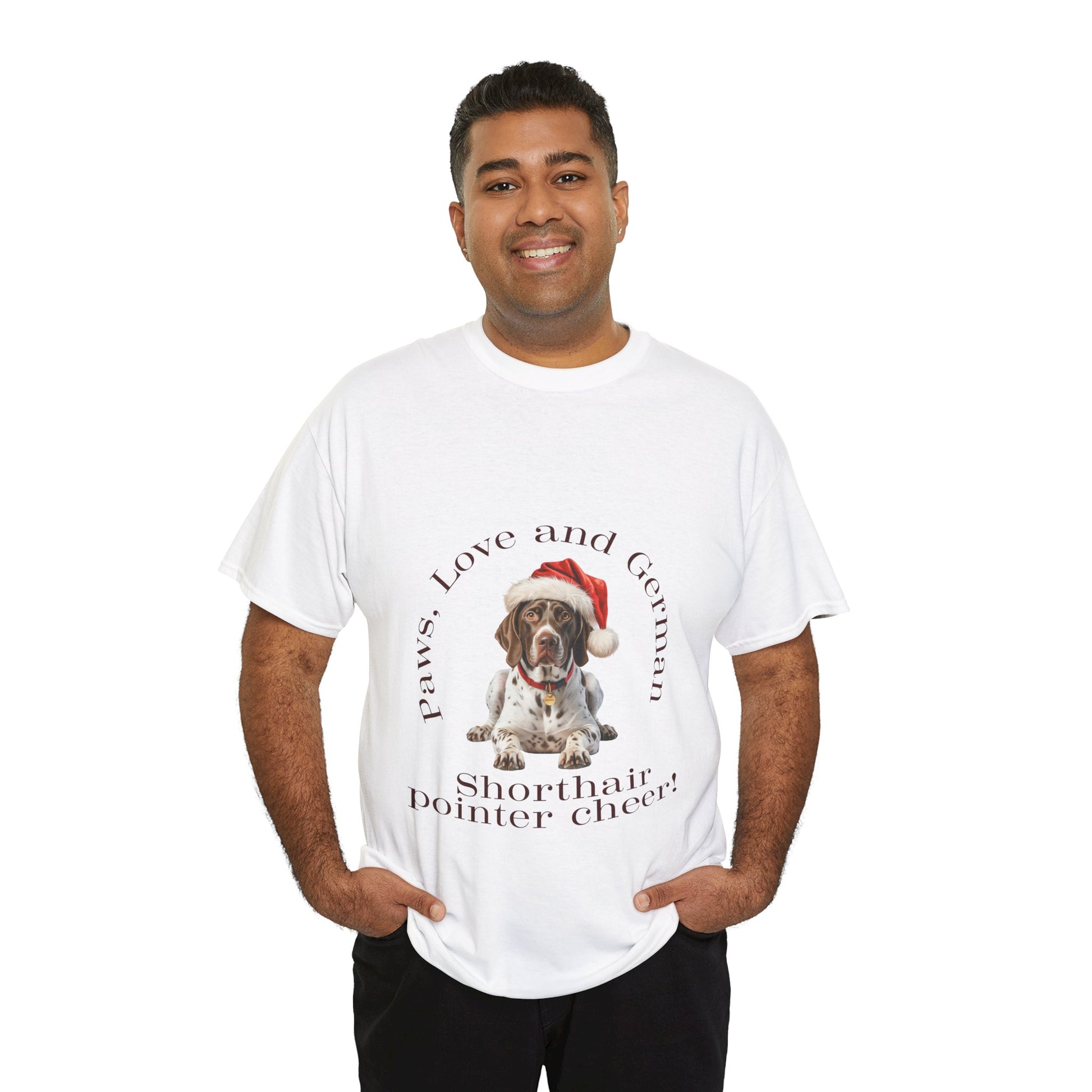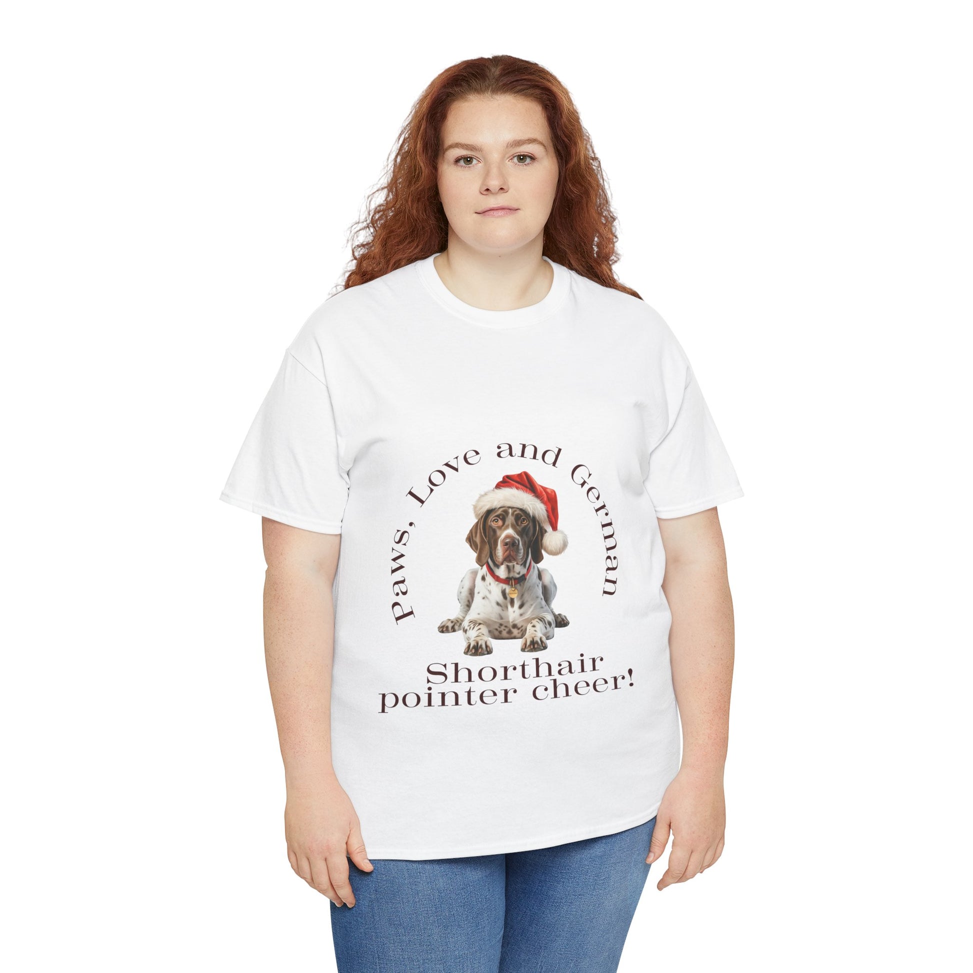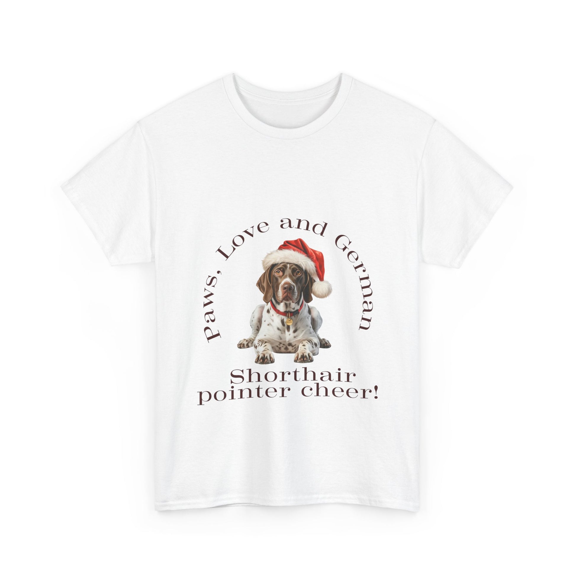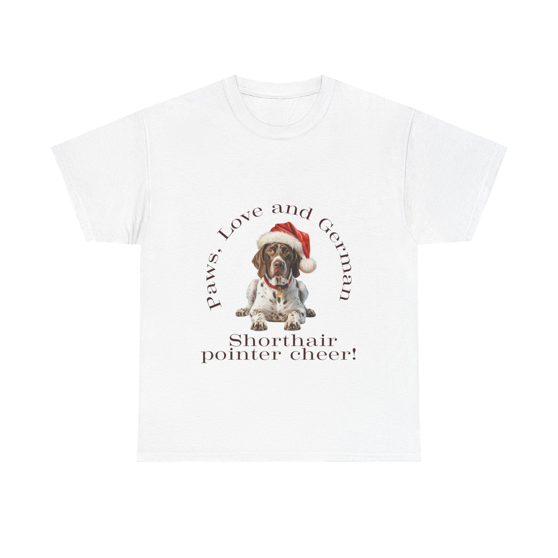 Paws, love, & German Shorthaired Pointer Cheer Christmas T-Shirt, Festive GSP Christmas Tee, Cute Pet Lover Shirt, Holiday Apparel, Great Gift for Dog Owners