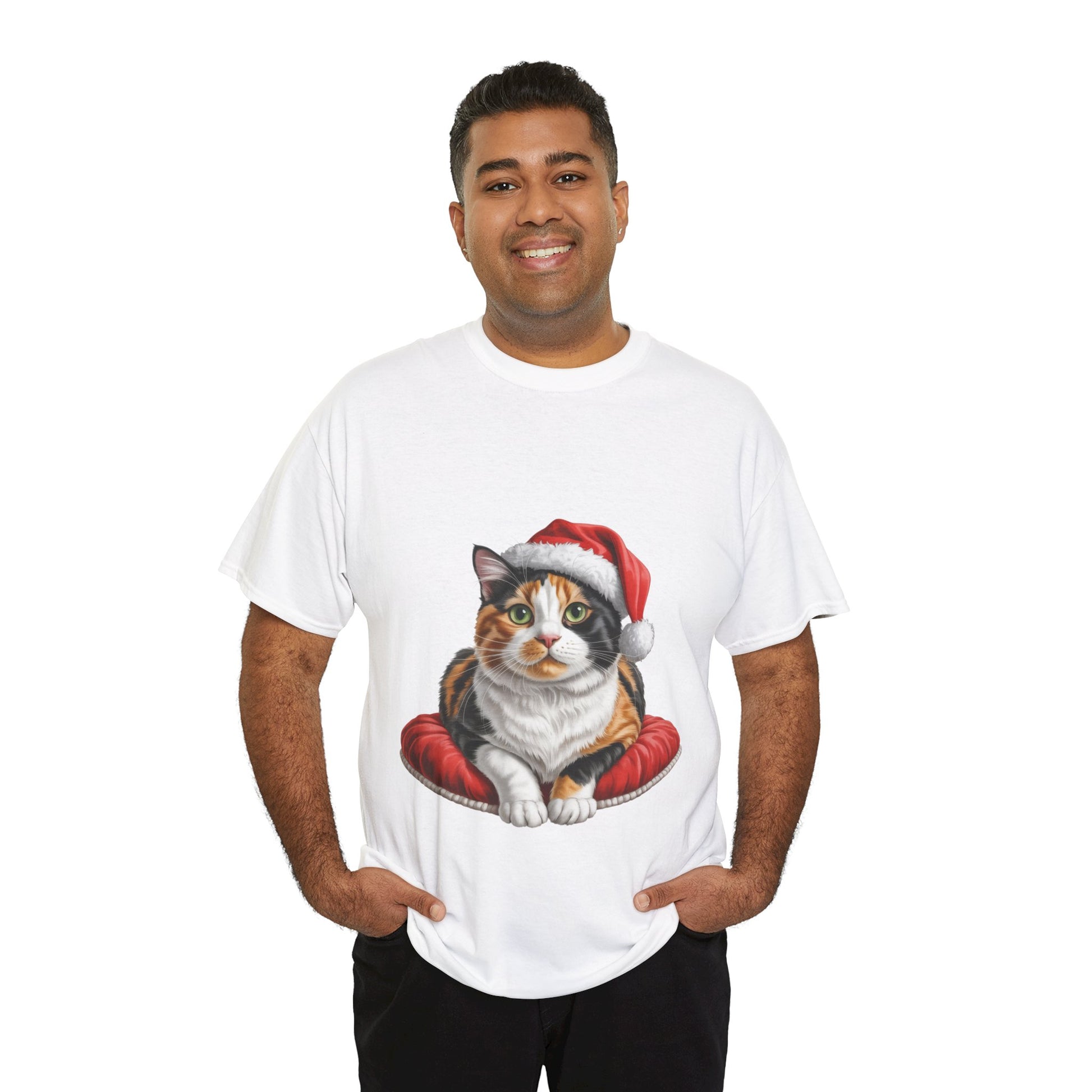 Calico cat on a cushion Christmas T-Shirt, Festive calico Cat Christmas Tee, Cute Pet Lover Shirt, Holiday Apparel, Great Gift for Pet Owners