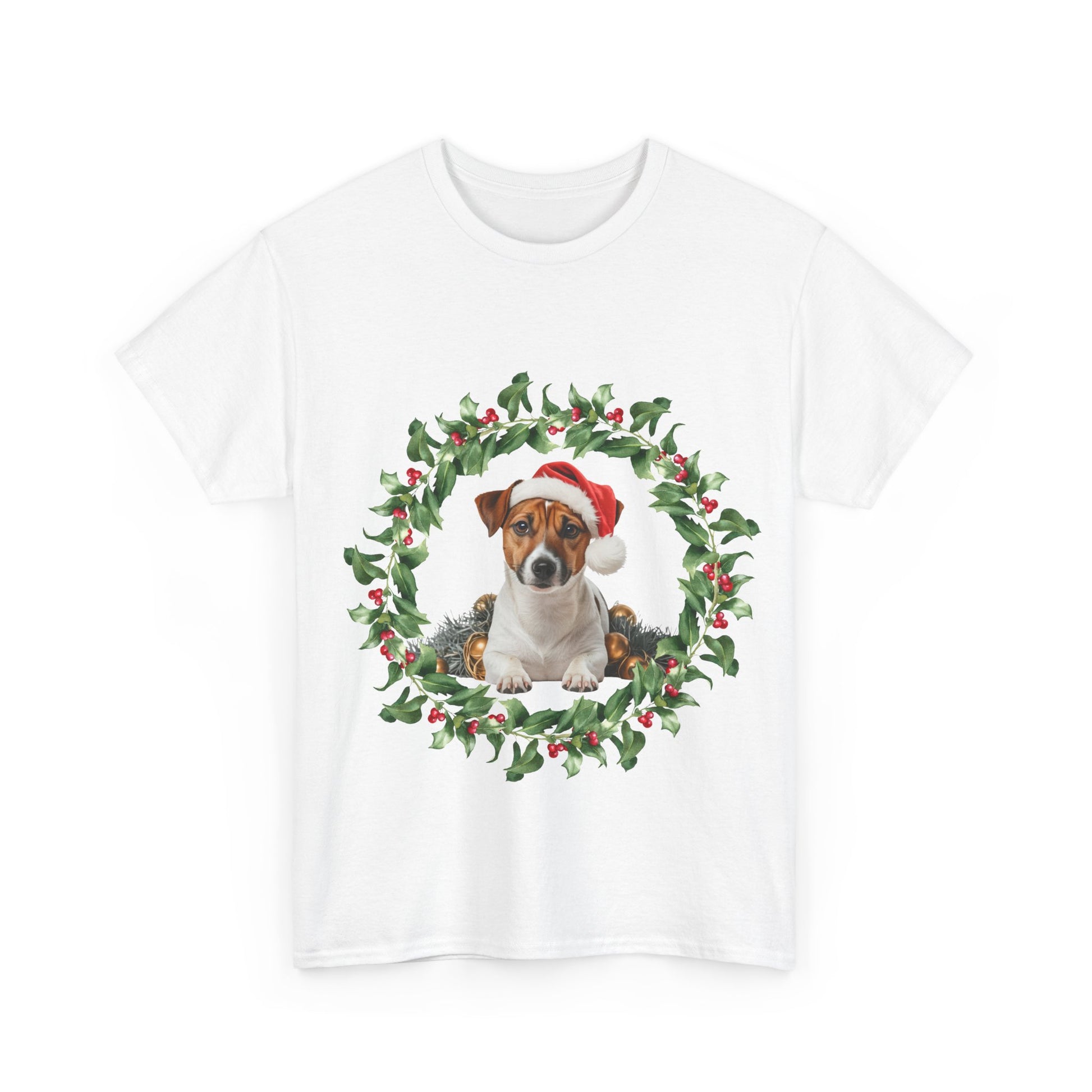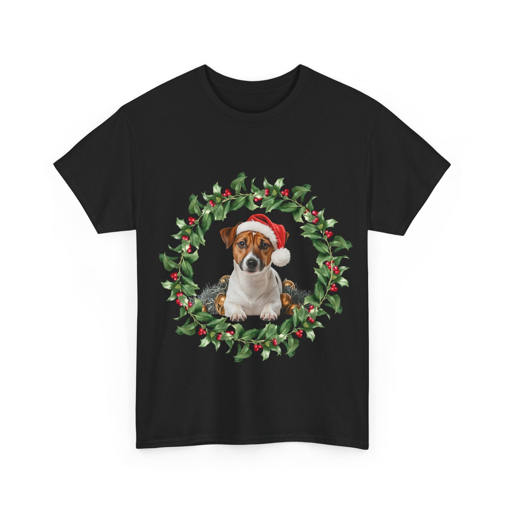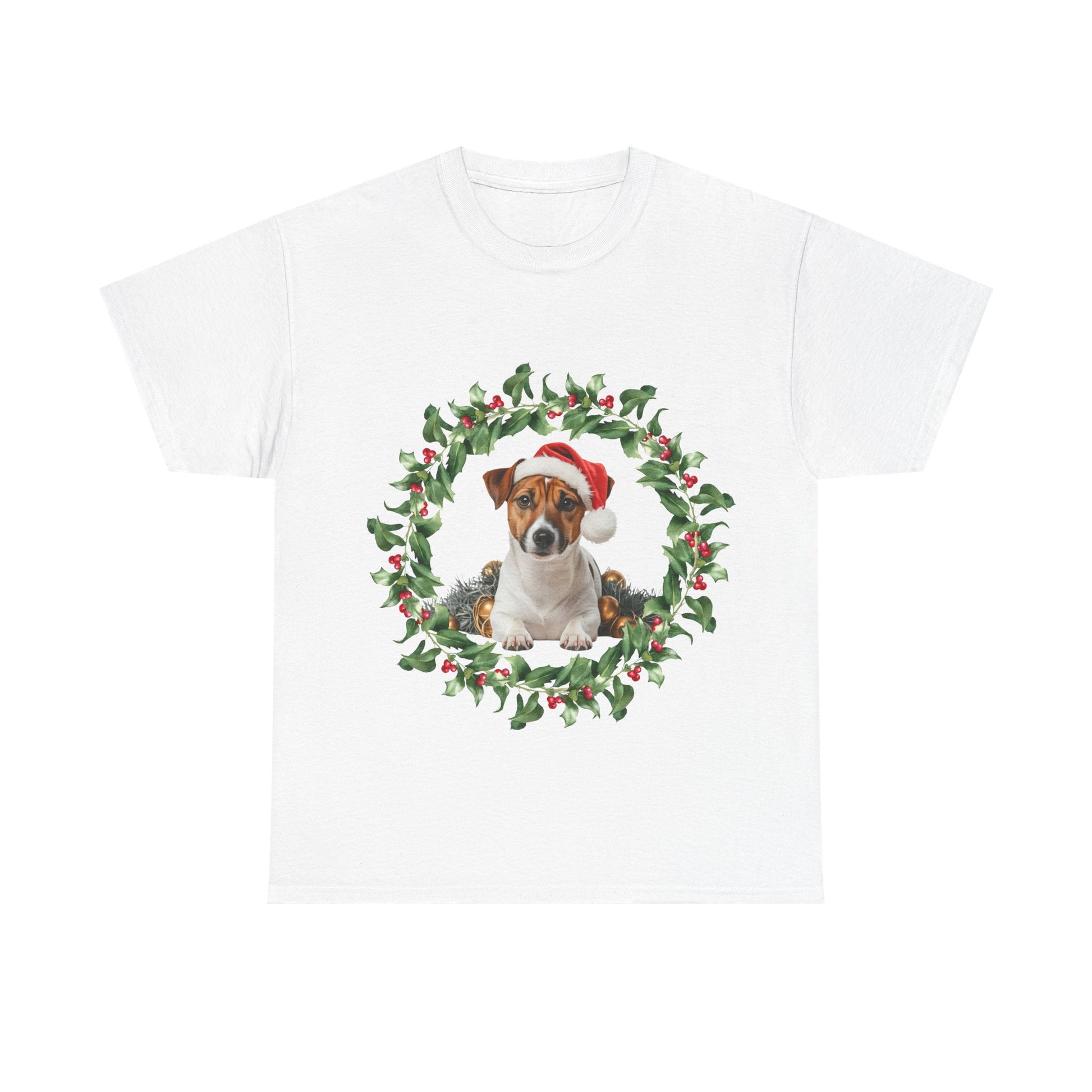Jack Russell Christmas wreath T-Shirt, Festive Jack Russell Dog Christmas Tee, Cute Pet Lover Shirt, Holiday Apparel, Great Gift for Dog Owners