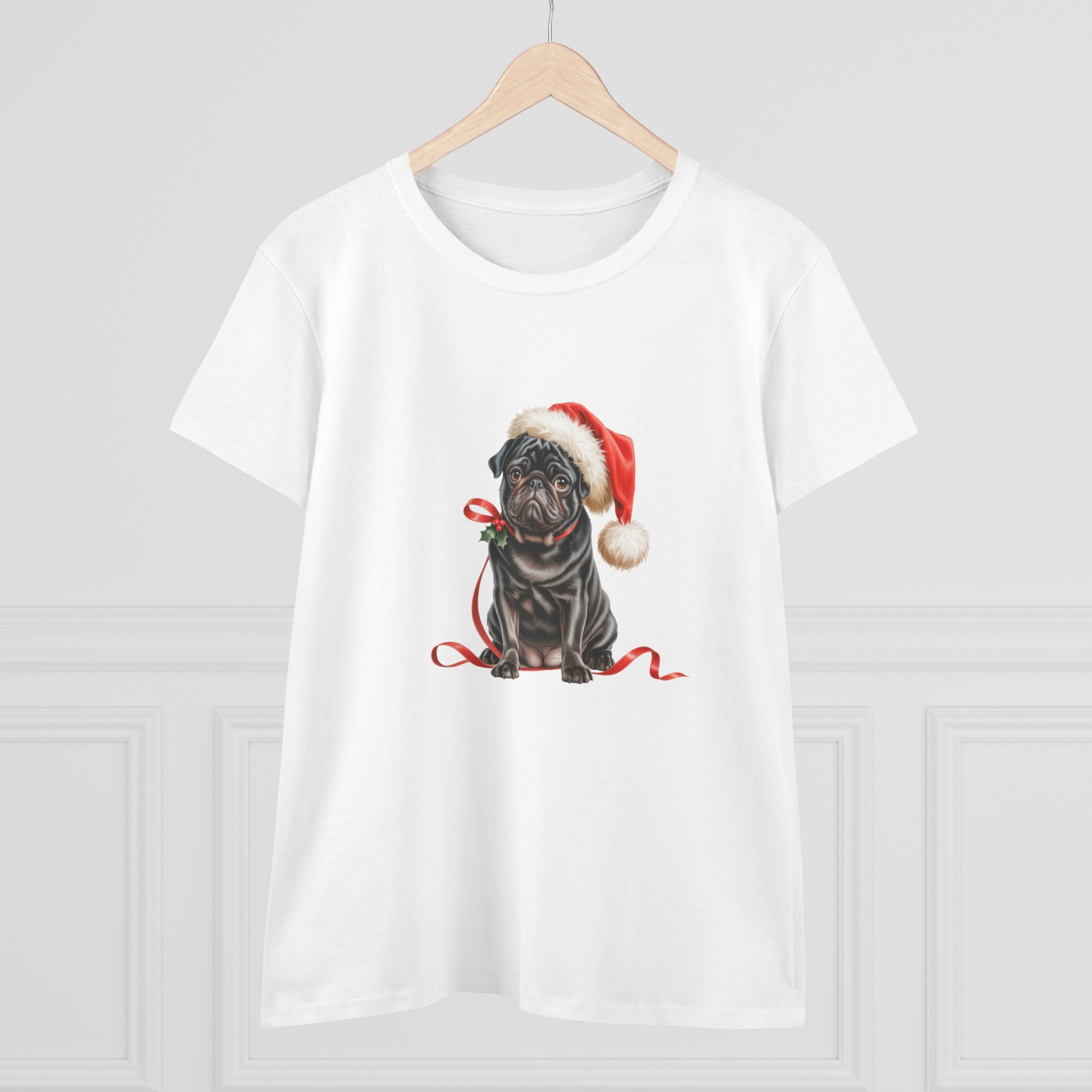 Embrace comfort and style with this Women's Midweight Cotton Tee, perfect for any casual occasion. Its soft, breathable fabric will keep you comfy all day long, making it an ideal choice for relaxing at home, running errands, or meeting friends for brunch. This tee, featuring a playful design, is a delightful addition to any pet lover's wardrobe, especially during festive seasons like Christmas. Celebrate the joy of the holidays or just enjoy everyday wear with this charming shirt that fits seamlessly into your lifestyle. A thoughtful gift for dog owners, this tee adds a touch of fun to any celebration or casual day.