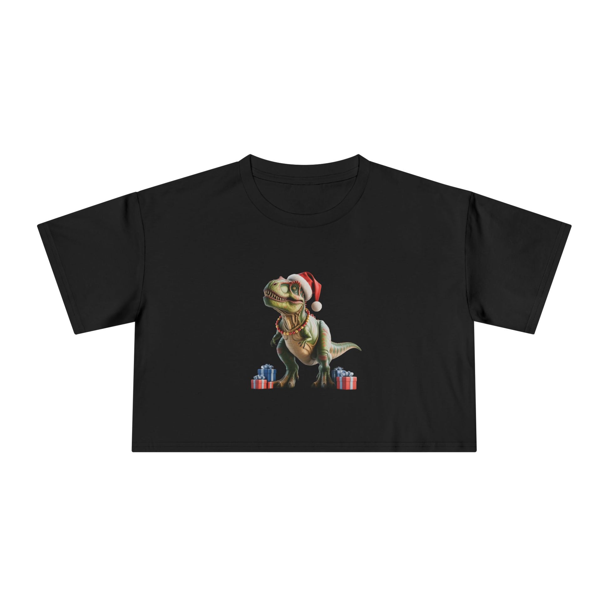 T-Rex Christmas Crop Tee — Festive Dino Holiday Graphic